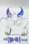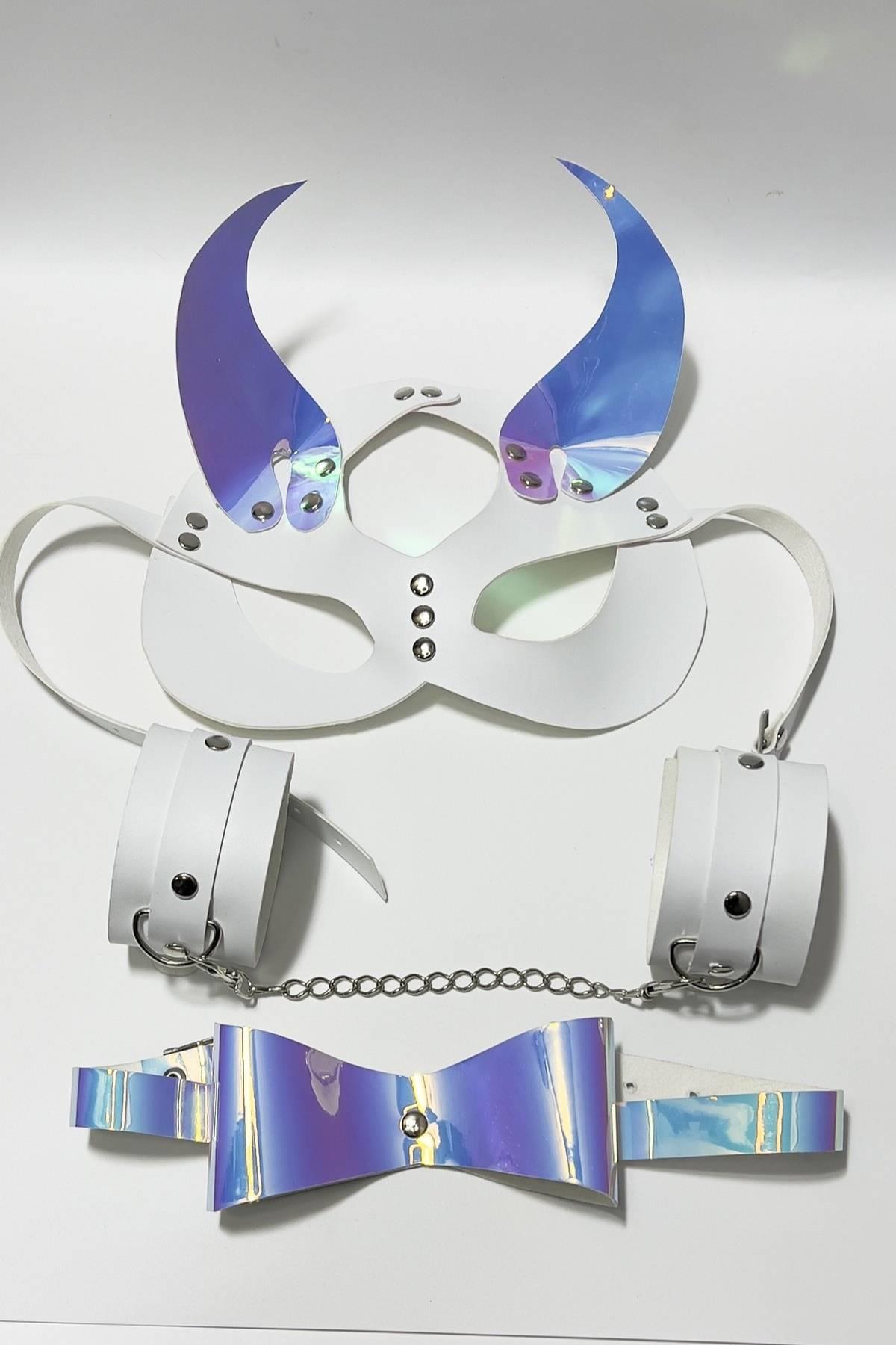 • Beyaz/Gümüş 3Lü Tasma,Kelepce,Maske Sexi Set 800475