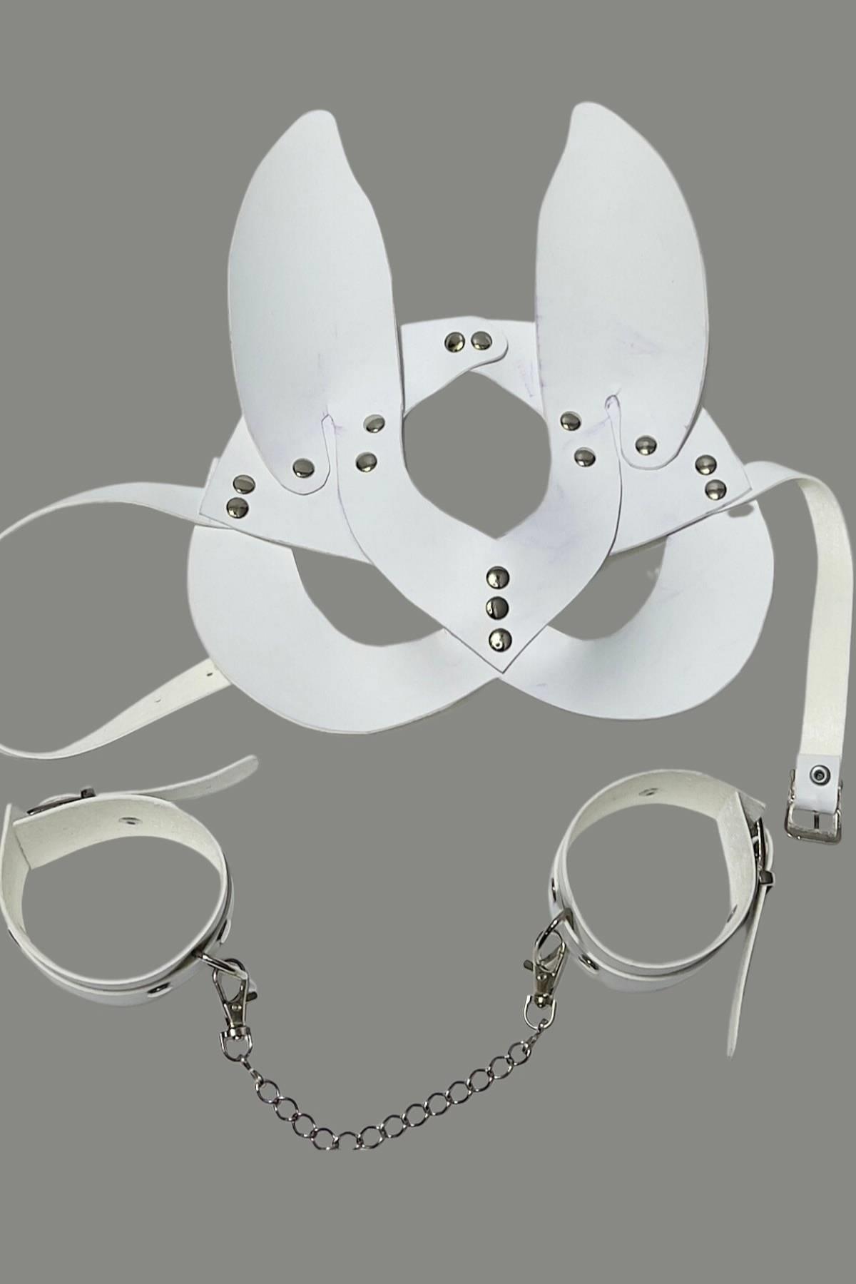 Beyaz Kulaklı Maske Ve Kelepce Set 800456