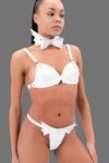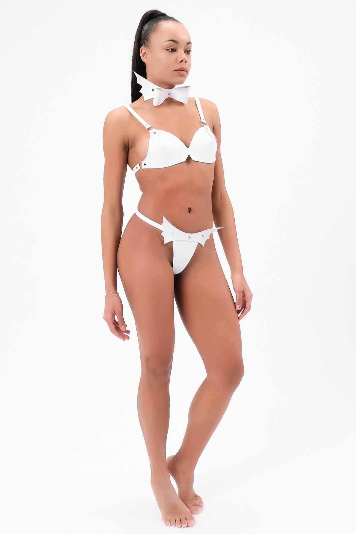Beyaz Yumuşak Suni Deri Fantezi Sütyen Külot Papyonlutakım 800451