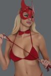 Kırmızı Deri Siri Kulaklı Şeytan Maske Ve Kırbaç Sütyen Külot Takım 800552