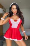 Kırmızı Tül ve Dantel İşlemeli Fantezi şık Kostüm 52048