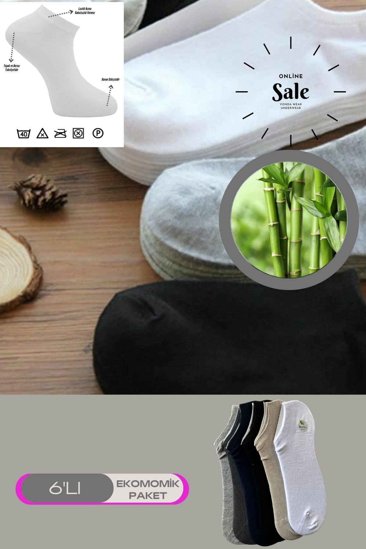 6lı Bambu Topuk Burun Dikişsiz Kısa Konç Spor Erkek Babet Çorap Pamuk 2008-ÇokRekli-6LI