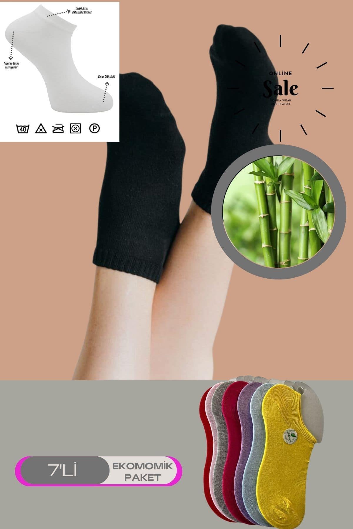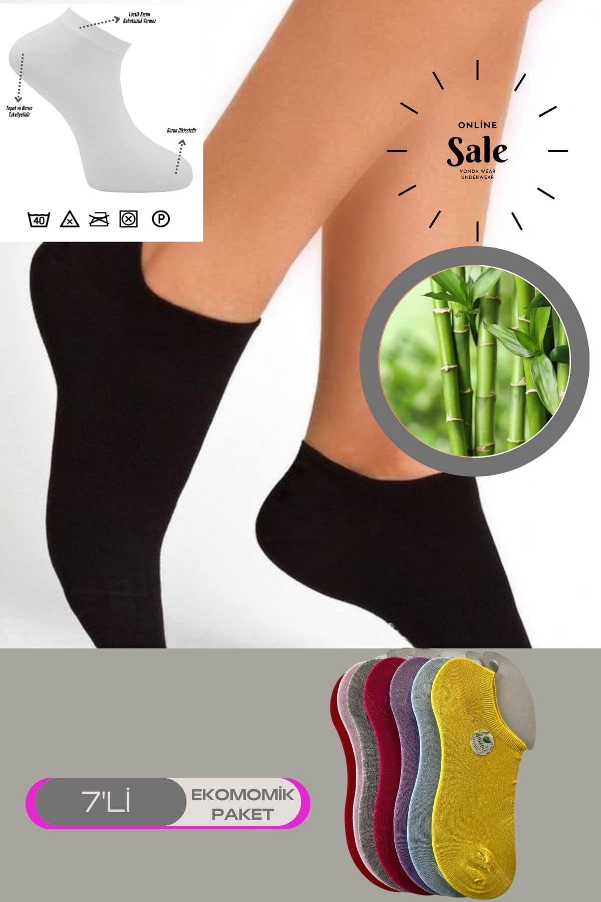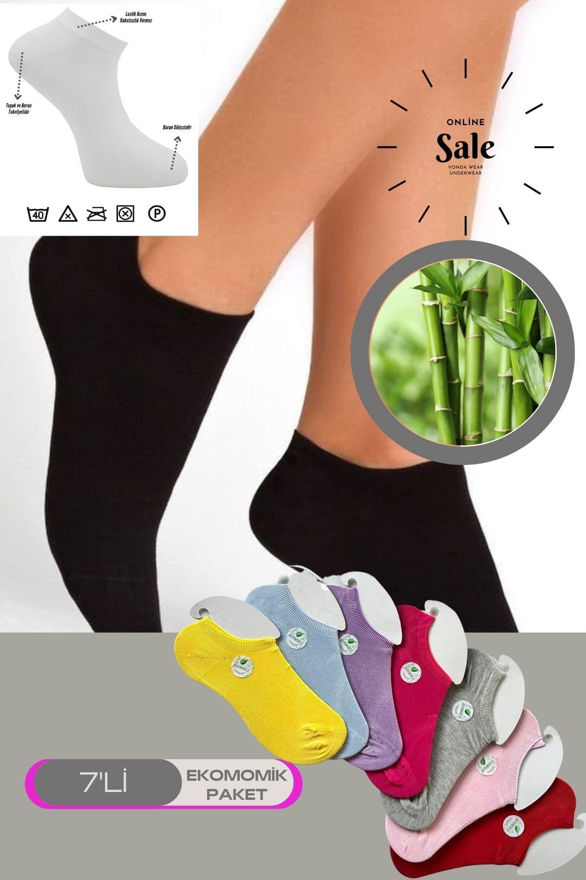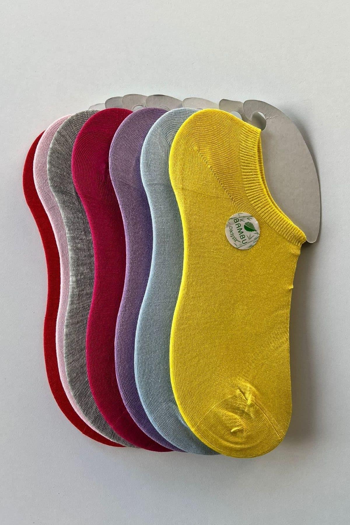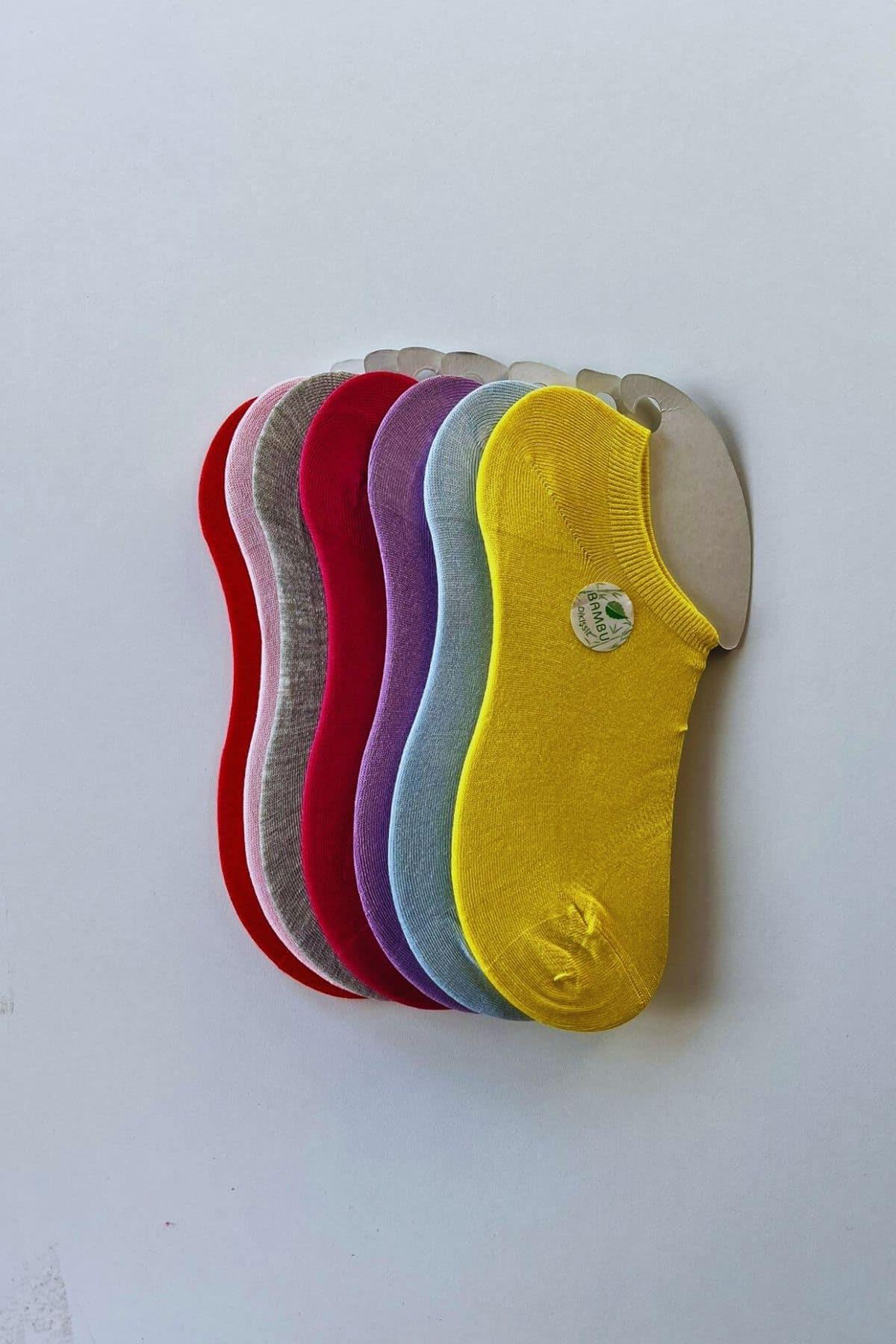 Rekli 7 li Bambu Topuk Burun Dikişsiz Takviyeli Kadın Patik Çorap 2009-7Lİ