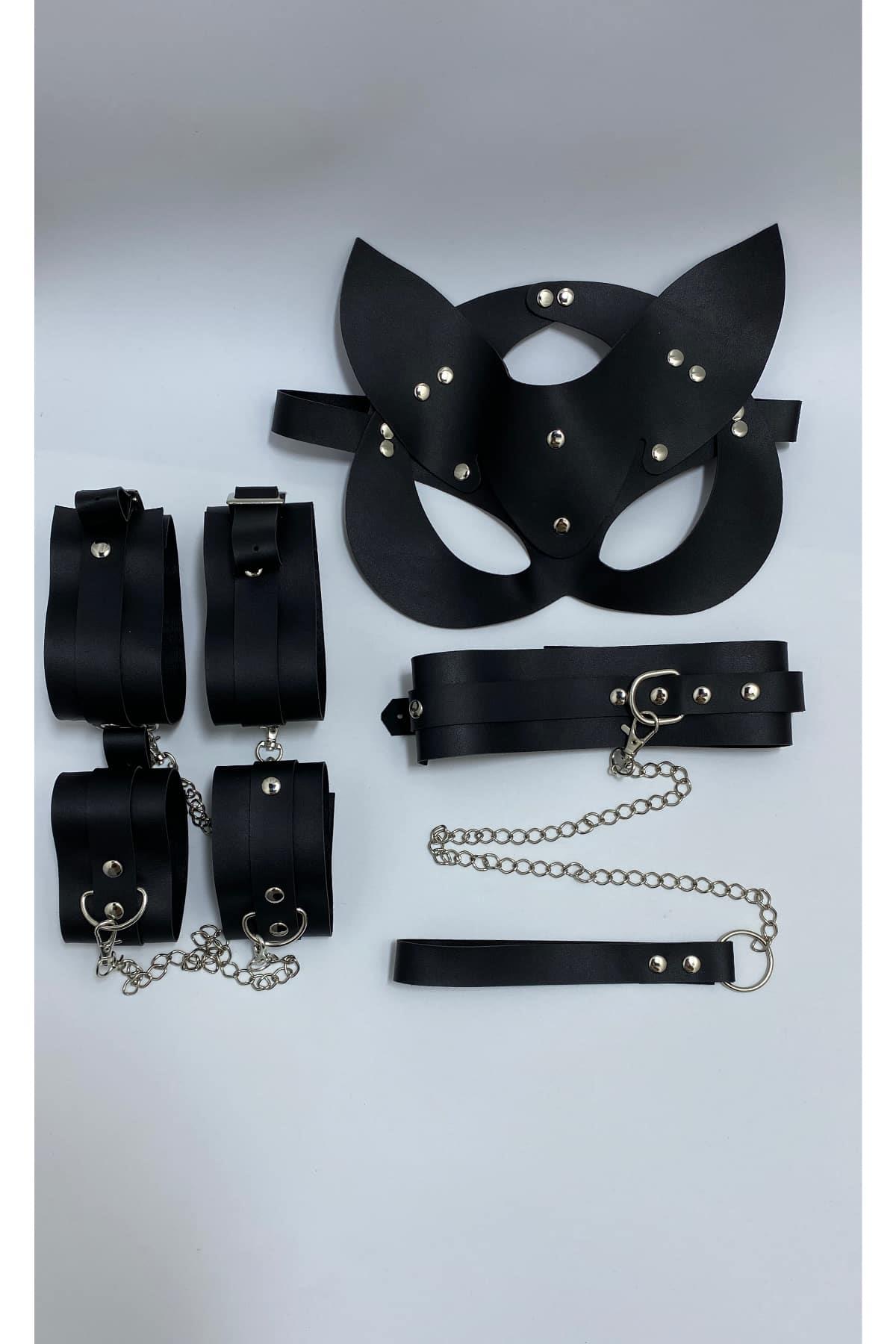 • Siyah Harness Fantezi Aksesuar Suni Deri 4 lü set 800222