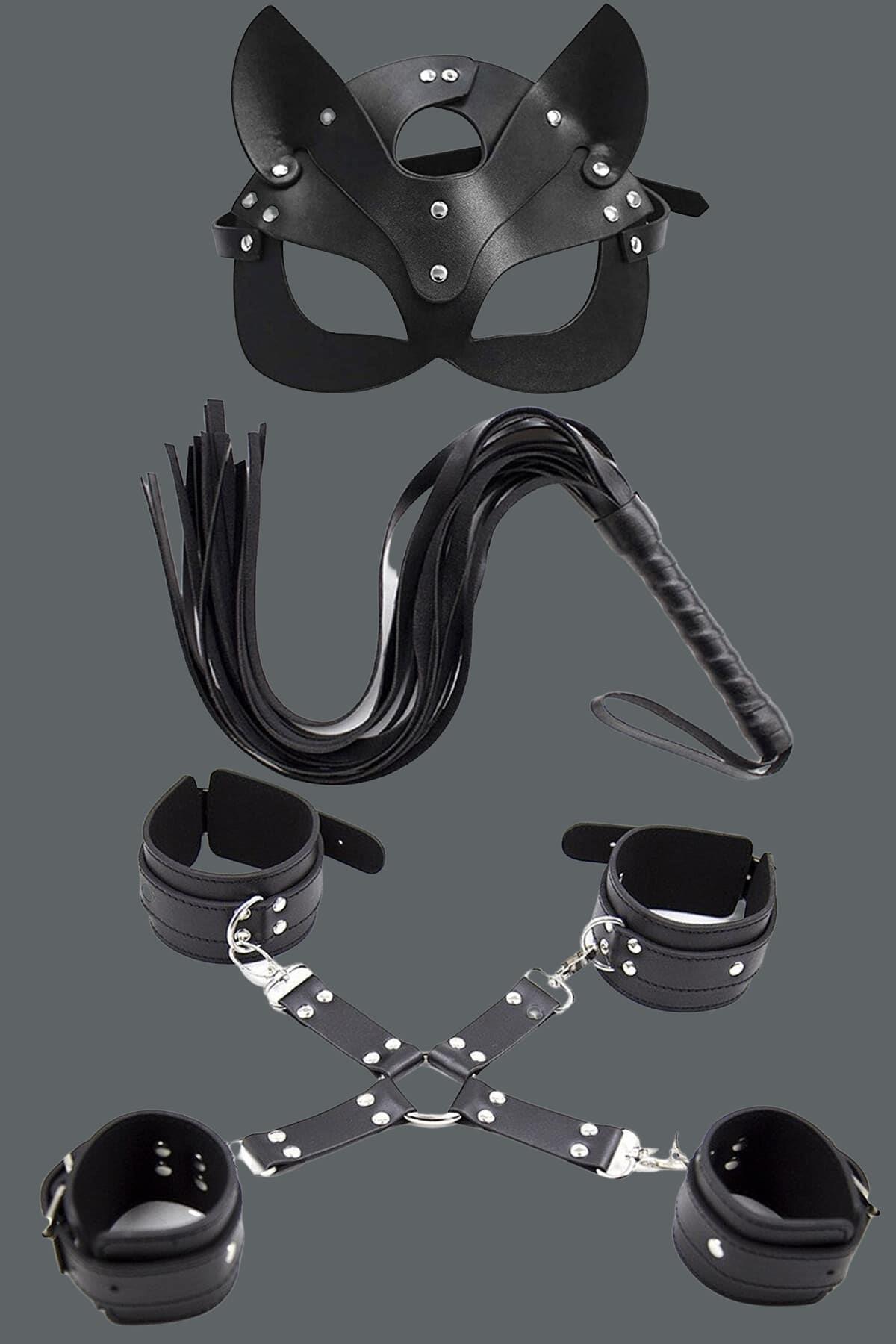 • Siyah Harness Fantezi Aksesuar Suni Deri 5 lİ SEXİ set H007