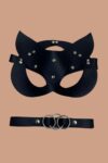 Siyah Harness Sexi Maske Ve Siyah Boyun Deri Aksesuarı 800250