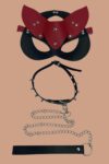 Siyah/Kırmızı Maske Ve Çivili Tasma Deri Set 800254