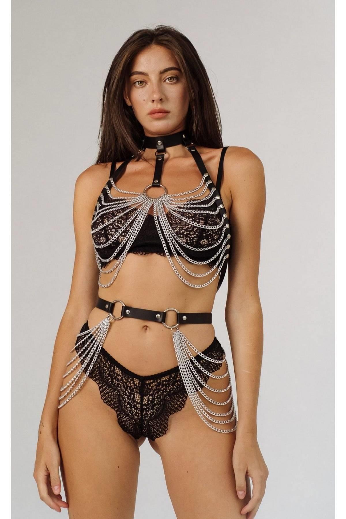 • Sütyen Ve Bel Üstüne Deri Zincir Tamamlayıcı Sexi Kostüm 700641