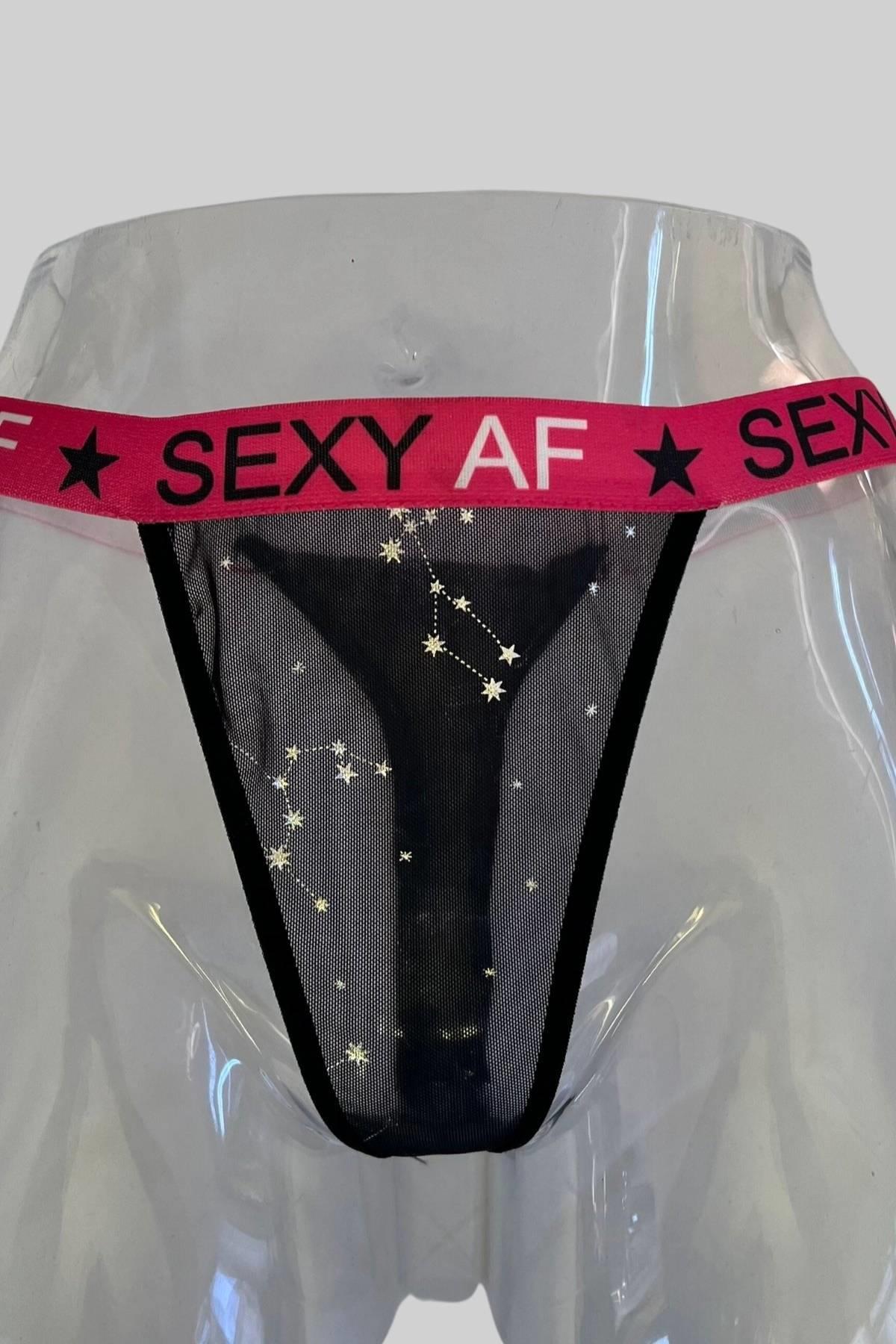 Siyah Yıldız Baskı Ve Sexy Yazılı Şık Sütyen Külot Takım 51208